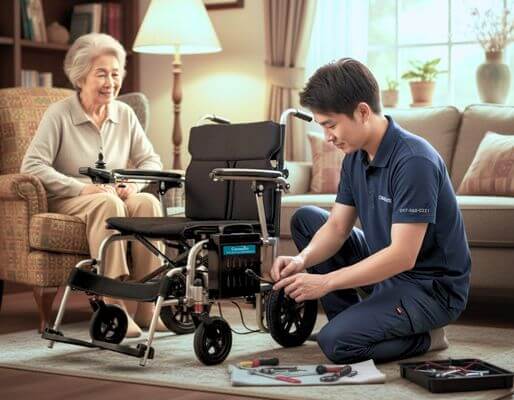 ต่างจังหวัดมี 2 ทางเลือก บริษัทส่งอะไหล่ให้พร้อม Video วิธีการเปลี่ยน หรือลูกค้าส่งวีลแชร์ รถเข็นไฟฟ้ากลับมาทางบริษัทเพื่อให้ช่างตรวจเช็คและแก้ไข