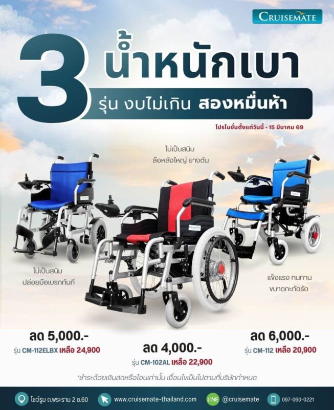 การเลือกวีลแชร์ไฟฟ้าผู้สูงอายุไม่ใช่แค่ดูว่า “ยี่ห้อไหนดี” แต่ควรพิจารณาความเหมาะสมกับสรีระและการใช้งานของแต่ละคนด้วย ลูกค้าส่วนใหญ่แนะนำ Cruisemate ซึ่งเป็นแบรนด์ไทยที่ขึ้นคำค้นหามากที่สุดใน Google ทั้งยอดขายและบริการหลังการขาย พร้อมคุณภาพที่คนไทยไว้วางใจ