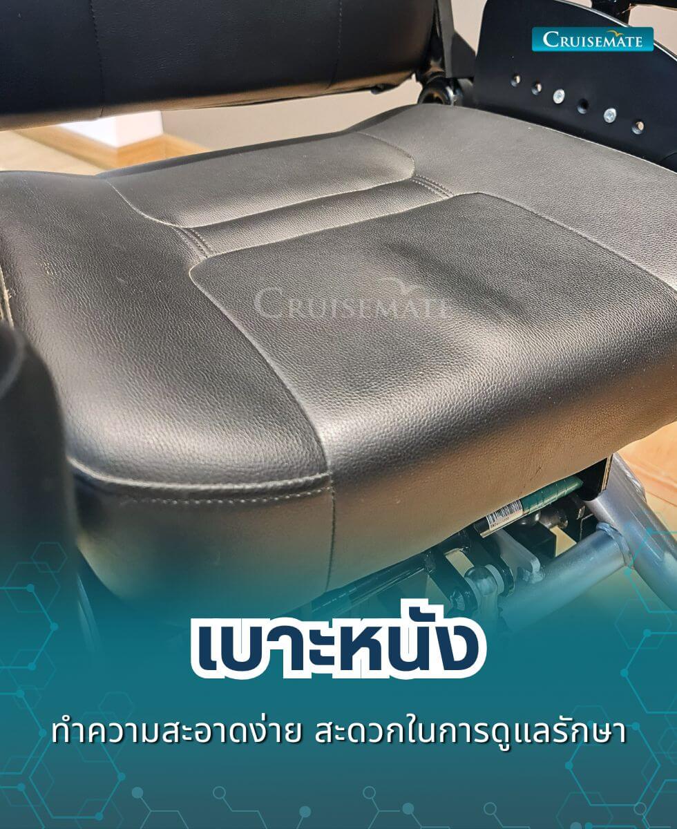 เบาะรองนั่งของรุ่นนี้ออกแบบมาเพื่อให้ผู้ใช้งานนั่งสบายที่สุด ด้วยขนาดกว้าง 45 ซม. และความหนา 5 ซม. ทำให้รองรับสรีระได้ดี แม้ผู้ใช้งานรูปร่างใหญ่ก็ยังนั่งได้สบาย ไม่อึดอัด ระดับความสูงของเบาะจากพื้นอยู่ที่ 58 ซม. ซึ่งเป็นความสูงที่เหมาะสม ช่วยให้การยกตัวหรือเคลื่อนย้ายผู้ใช้งานจากเตียงหรือเก้าอี้ทำได้ง่ายขึ้นและปลอดภัยมากกว่า นอกจากนี้ยังมีหมอนรองคอที่ออกแบบให้เข้ากับสรีระ ใช้หนุนเพื่อผ่อนคลายเวลานั่งนานได้เป็นอย่างดี และหากต้องการความคล่องตัวก็สามารถถอดออกได้สะดวกตามการใช้งาน