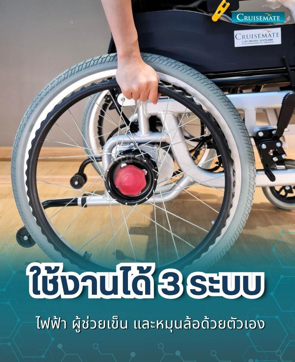 ใช้งานได้ 3 ระบบ : ไฟฟ้า มือหมุน ผู้ช่วยเข็น