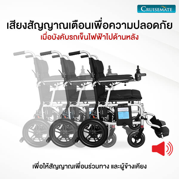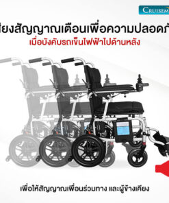 รถเข็นไฟฟ้าผู้สูงอายุรุ่นนี้ มาพร้อมล้อหลังกันหงายด้านหลัง ที่คอยช่วยประคองผู้ใช้งานไม่ให้หงายหลังเมื่อใช้งานบนทางลาดที่ชันเกินไป เพื่อความปลอดภัยยิ่งขึ้นในการใช้งาน