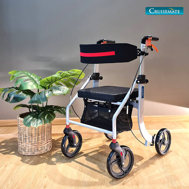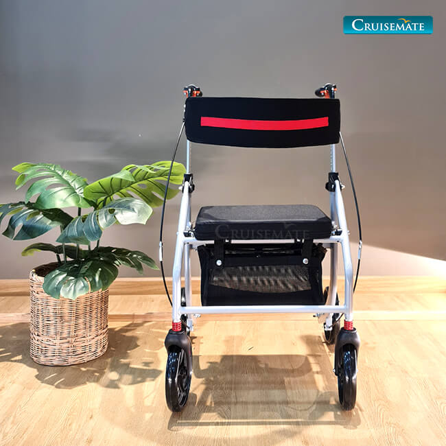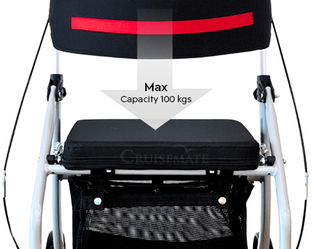 และนอกจากมีเบาะรองนั่งไว้สำหรับนั่งพักแล้ว พนักพิงหลังก็เป็นสิ่งจำเป็นอีกอย่างหนึ่ง ที่ออกแบบไว้เพื่อช่วยไม่ให้ผู้ใช้งานหล่นจากตัวรถเข็น